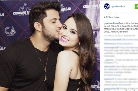 “O cantor Cristiano Araújo sofreu acidente de carro na madrugada desta quarta-feira (24), em Goiás. O artista voltava de um show em Itumbiara, a 200 km de Goiânia, por volta das 3h00, quando o veículo em que ele estava capotou, na BR-153, entre as cidades de Goiatuba e Morrinhos, em Goiás. A namorada do cantor, Allana Coelho Pinto de Moraes, de 19 anos, não resistiu aos ferimentos e faleceu no local. Outras duas pessoas estavam no carro, o segurança Ronaldo Ribeiro, que dirigia o veículo, uma Land Rover, e o empresário Victor Leonardo. Eles tiveram ferimentos leves e passam bem. Cristiano Araújo foi levado para o Hospital Municipal de Morrinhos, onde recebeu os primeiros atendimentos e já foi transferido em uma Unidade de Terapia Intensiva Móvel para Goiânia. O cantor está sedado e em estado grave. Toda a equipe de Cristiano Araújo se solidariza com a perda de Allana Moraes”.